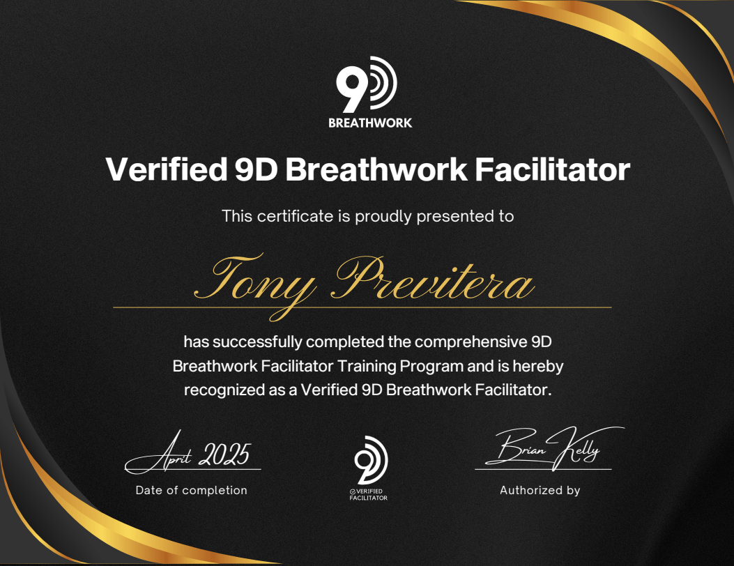 Tony Previtera is a Verified 9D Breathwork Facilitator, wellness coach, and systems strategist dedicated to helping people reclaim personal responsibility, inner strength, and sovereign self-leadership.